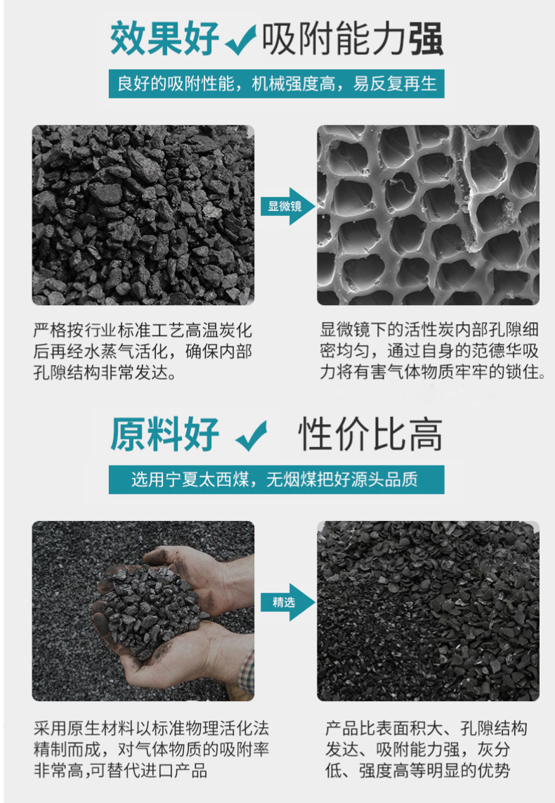 經過研究發現,在生產工藝基本條件相同條件下,煤質活性炭孔結構類型主要由煤本身性質決定:褐煤生產的活性炭碘值不高,但孔容積較高,這說明褐煤生產的活性炭中孔,大孔較多,這種活性炭的脫色能力較強,在某些液相應用領域,實際應用效果較好;由不黏煤、弱黏煤為原料生產的活性炭中孔較發達,適宜生產液相吸附凈化用活性炭;以無煙煤為原料生產微孔發達的活性炭,適宜生產優良的氣相吸附用活性炭。